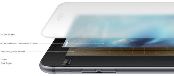 In smartphones 2015, Apple surprised everyone with the iPhone 6 and iPhone 6 Plus, which has implemented the technology 3D Touch, allows you to use the tap on the screen with different force to access different functions. This technology works on the same principle as in ForceTouch laptop trackpad MacBook.